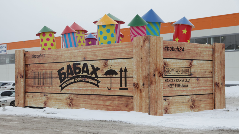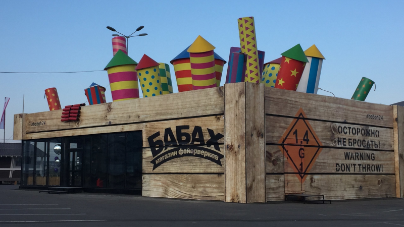 Выбирать фейерверкОднажды мы решили, что наши розничные магазины должны выглядеть необычно. Так был придуман и в 2016 году реализован дизайн «Коробка с ракетами». Данный дизайн запатентован, авторское право охраняется.