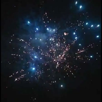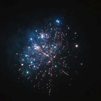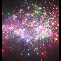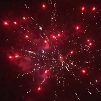 -Красные, зеленые, пурпурные, голубые и разноцветные пионы с белым мерцанием и облаком трещащих разрывов.