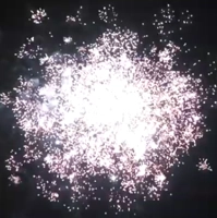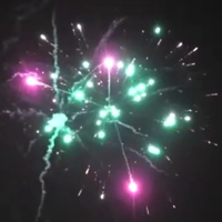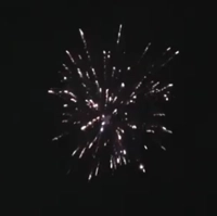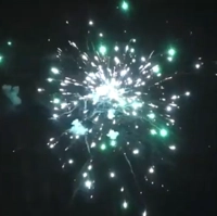 -Серебряный заряд в пурпурную пальму с хризантемой; серебряные вертушки разрываются красно-зелеными звездами с мерцанием;