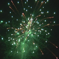 Королевская парча с зелеными и синими падающими вних жемчужинами сменяется трещащими шлейфами, переходящими в трещащие ивы. Финал- букет букет из пальм с вкроплениями звезд с трещащими и блеском.