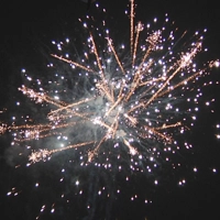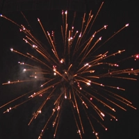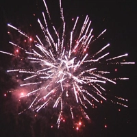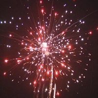 Красно-белые мерцающие сферы; золотые ивы с синими жемчужинами; серебряные пальмы с красными блестками; трещащие пальмы с серебряным блеском; белые хризантемы с зеленым блеском; свист. Финал – букет из трещащих ив.
