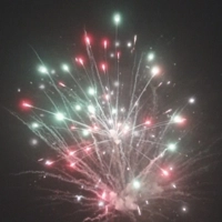 Красные мерцающие пионы, пурпурные хризантемы в золотом треске, разбегающиеся рыбки, красно-синие пионы, трещащие сферы с зеленым пестиком, разноцветные мерцающие пионы. Финал — красная хризантема в золотом треске.
