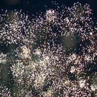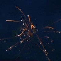 Трещащая мина переходит в шуршащую пальму. Зеленые или красные яркие звезды в обрамлении облака растрескивающихся капелек. Финал-занавес из множества трещащих хризантем.