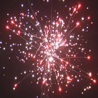 Разноцветные мерцающие пионы; пальмы в красном мерцание; золотая парча с синими жемчужинами; красные хризантемы с зеленым блеском; трещащие пальмы и красные звезды. Финал – золотой трещащий букет.