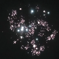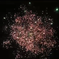-Красные, зеленые, пурпурные, голубые и разноцветные пионы с белым мерцанием и облаком трещащих разрывов.