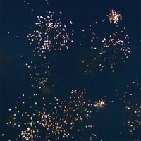 Начало фонтана заполняется золотисто-красноватыми искрами, которые чередуются с золотой плачущей ивой, создавая неповторимый рисунок на ночном небе. Затем появляются сферы из разноцветных огоньков, которые танцуют и переливаются в темноте.