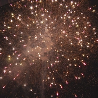 Золотые ивы с красным мерцанием; серебряные пальмы с зеленым жемчужинами; красные хризантемы; разноцветные мерцающие пионы; серебряные мерцающие облака с желтыми звездами; золотая парча в мелком треске. Финал – трещащие облака с разноцветными жемчужинами.