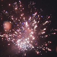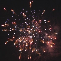 Разноцветные мерцающие пионы; стайка золотых шуршащих паучков с синими или зелеными звездами;;;красные хризантемы с треском; бело-золотые ивы; свист. Финал - трещащее облако.