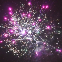 Вы видите, как в небе расцветают пионы — их нежные лепестки распускаются в ярких оттенках розового и красного, создавая ощущение весеннего цветения. Затем, словно в тропическом раю, появляются пальмы, их силуэты грациозно танцуют под ритм взрывов, а вокруг них разлетаются хризантемы — золотистые и белоснежные, они словно искрящиеся звезды на фоне ночного неба.