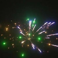 Комплект состоит из 6 шаров и трубы для запуска. Эффект: Мерцающие звезды: красные, синие, золотые; Стробирующие звезды: пурпурные, зеленые, золотые; Синяя пальма с зелеными звездами и золотыми стробами.