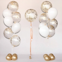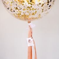 Прозрачный шар Bubble с россыпью золотого конфетти и нежными атласными лентами придаст вашему празднику утончённое сияние и атмосферу торжественной лёгкости.