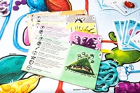 <br>Состав коробки: - игровое поле; - 40 жетонов вирусов; - 5 планшетов игроков; - 16 маркеров; - 8 жетонов области; - 4 жетона обострений; - 30 карт областей; - 25 карт базовых мутаций; - 13 карт событий; - 22 карты мутации; - правила игры.