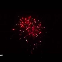 Первый залп и сразу же красота! Красные жемчужины разлетаются в разные стороны, словно звезды на ночном небе. Белое мерцание добавляет еще больше очарования этому зрелищу.
